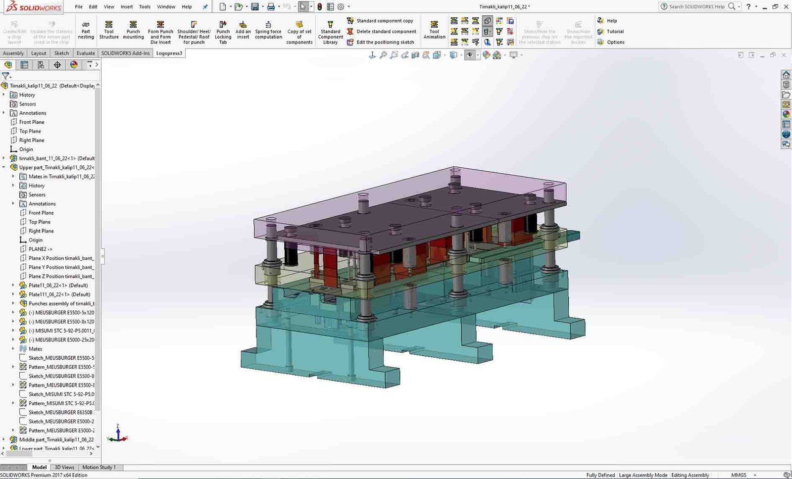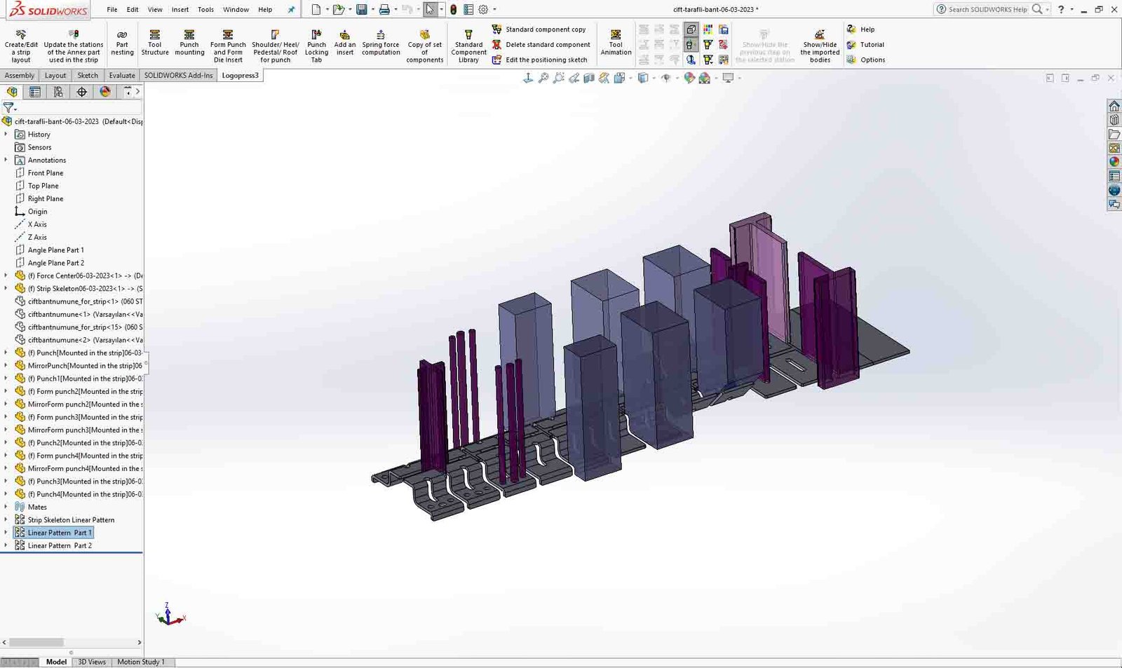 Sac kalıpçılığında etkin ve seri bir şekilde tasarım yapabilmek için CAD programlarına ihtiyacımız vardır. ZW3D, COSTOPTIMIZER, NX Progresivve Die Qizard, Solidworks For Logopress gibi çok fazla program ile tasarım yapılabilmektedir. Bu programlar arasında Solidworks for Logopress Program içerisinde etkin bir şekilde bant tasarımı, kalıp plakalarını oluşturma, kesme boşluğu oluşturma, kolon, cıvata, yay gibi sabit kalıp elemanlarını tasarlama imkanı sunmaktadır. Logopress’i bu alanda lider konuma getiren ise tasarım sürecini diğer programlara nazaran çok daha hızlı ve kaliteli ve bir şekilde yapılabilmesidir. Cıvata, yay gibi hazır parçalarda ise çok geniş bir kütüphane sunarak ihtiyaca göre yenilik ve değişiklik yapabilme imkanı da vermektedir. Solidworks for Logopress ile bir kalıp işini tasarımdan mühendisliğe, satın almadan üretime kadar birçok işi oldukça kısa bir sürede yapılabilmektedir. Bu işlevselliği ve kullanışlılığı ile sektörde en çok tercih edilen program olmaktadır.